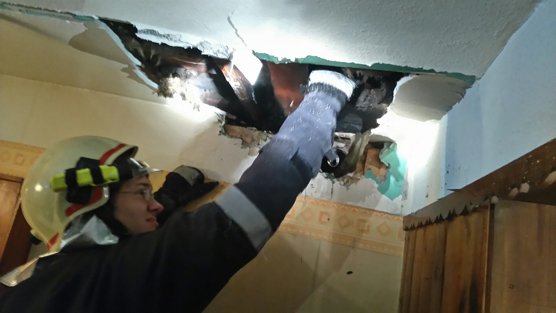 Schnell stellte sich heraus, dass der Glimmbrand durch das Eingreifen des Bewohners schon gut eingedämmt war. Jedoch mussten die Einsatzkräfte der FF Hohenberg die Decke mit Kettensäge und Schanzwerkzeug öffnen. Somit konnten noch vorhandene Glutnester mit einer Kübelspritze abgelöscht werden. Die Mannschaften von Pumpe Hohenberg und Tank St.Aegyd-Markt standen als Reserve zur Verfügung, konnten aber nach kurzer Zeit wieder einrücken.