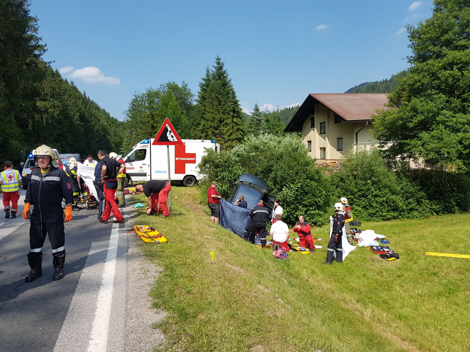Weiters war das Rote Kreuz Traisental mit 2 RTW und 1 NEF im Einsatz. 2 von 4 Verletzten wurden jeweils mit Christophorus 2 und 3 ins Krankenhaus geflogen. Die beiden anderen Verletzten wurden bodengebunden in das nächste Krankenhaus transportiert.