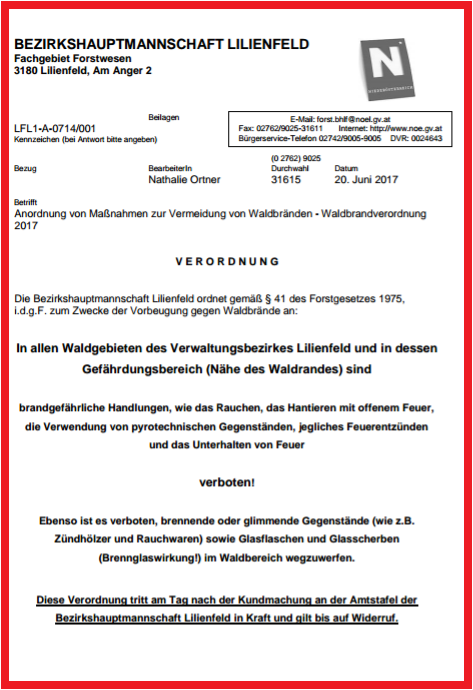 Bitte folgende Verordnung beachten! Ihre Feuerwehr wird Ihnen dankbar sein!