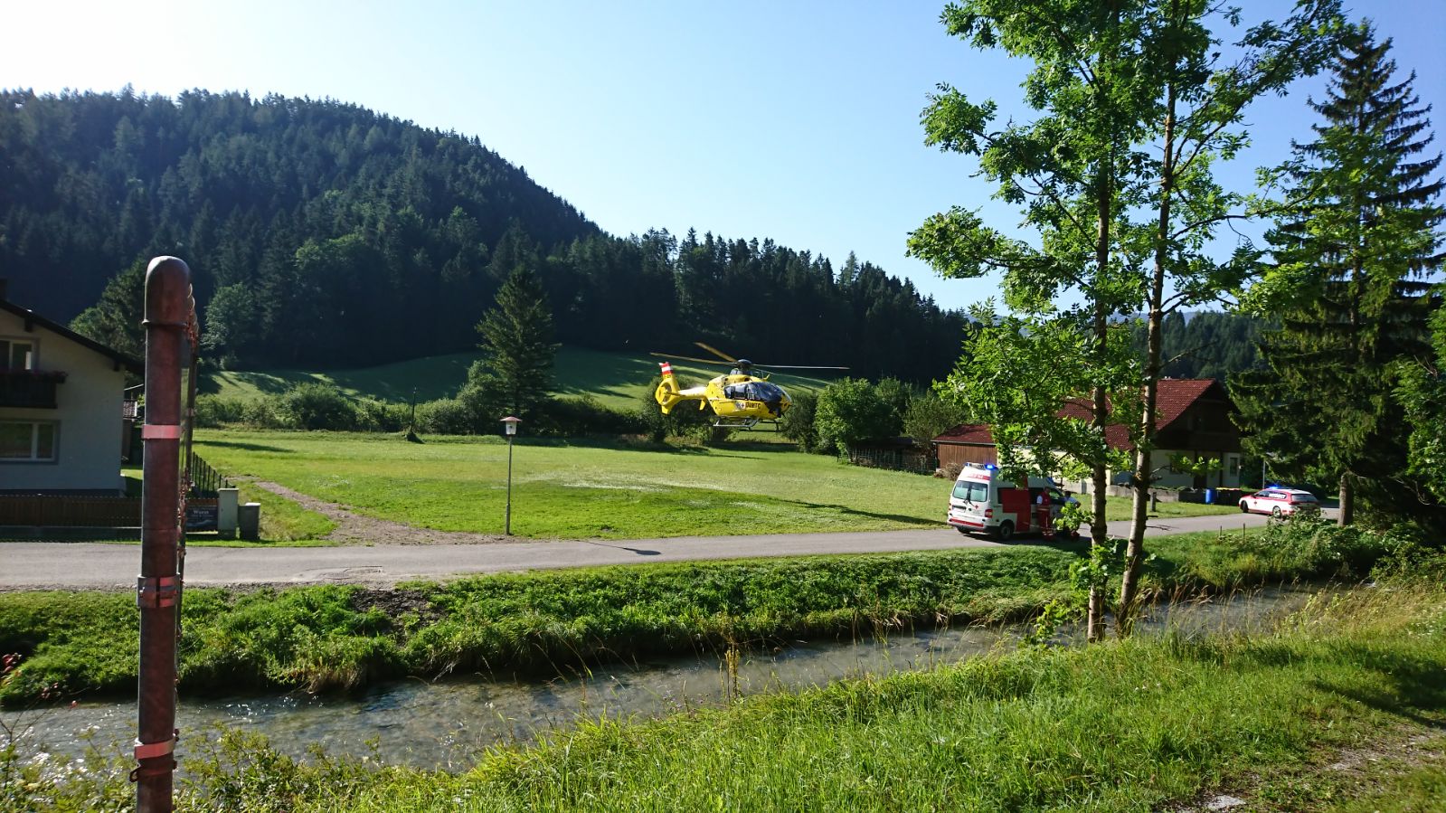 Während das Notarztteam und eine RTW- Besatzung den schwerverletzten stabilisierten, wurde der leichtverletzte Pkw-Lenker (ebenfalls aus dem Bezirk Lilienfeld) mit einem zweiten RTW ins Lilienfelder Krankenhaus transportiert. Der Motorradlenker wurde mit dem Rettungshubschrauber Christophorus 15 in das LKH St. Pölten geflogen.