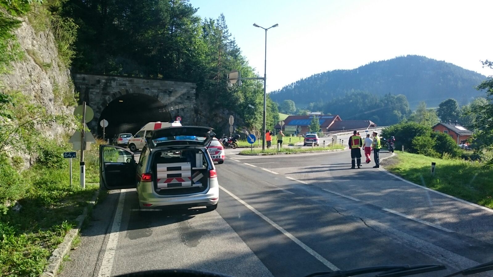 Ein Motorradlenker aus dem Bezirk Lilienfeld  wollte beim Tunnel in Mitterbach Richtung St. Aegyd abbiegen, dürfte jedoch einen herannahenden Pkw übersehen haben. Er wurde von dem Fahrzeug erfasst und zu Boden geschleudert wobei er sich schwere Verletzungen zuzog.