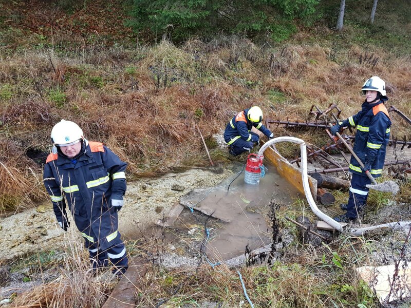 Durch den Sturm in der Vorwoche kam es bereits bei der Anfahrt zu Komplikationen, da umgefallene Bäume den Zufahrtsweg versperrten. Am Übungsort eingetroffen wurden die erforderlichen Maßnahmen von den einzelnen Feuerwehren bravourös abgearbeitet, der Verletzte wurde aus seiner misslichen Lage mittels Hebekissen befreit, der Waldbrand wurde mit einem umfassenden Löschangriff bekämpft und auch die beiden „Brandstifterinnen“ konnten in einem leerstehenden Gebäuden gefunden werden.