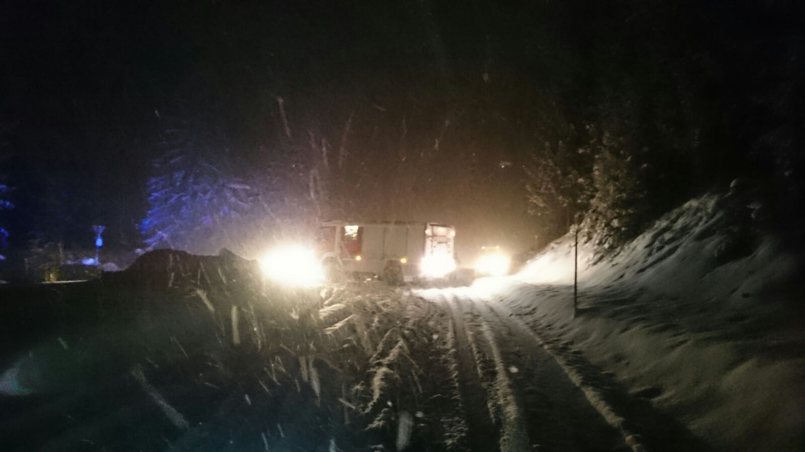 Umgehend rückte ein Teil der Mannschaft mit TLF-A zum Einstzort aus. Bereits wenige Minuten später wurde die FF St. Aegyd telefonisch in Kenntnis gesetzt, dass auf der B21 ebenfalls ein LKW von der Straße gerutscht ist. Da sich noch einige Mitglieder am Stützpunkt in Bereitschaft befanden, wurde dieser Einsatz zeitgleich mit RLF-A abgearbeitet.