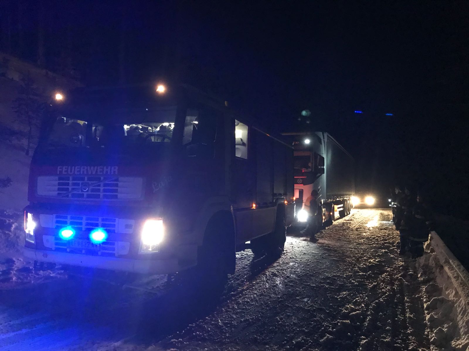 Auch am 05.12.2017 wurde die FF St. Aegyd-Markt auf der B23 in Lahnsattel benötigt und um 19:15 Uhr zu einer LKW-Bergung alarmiert.