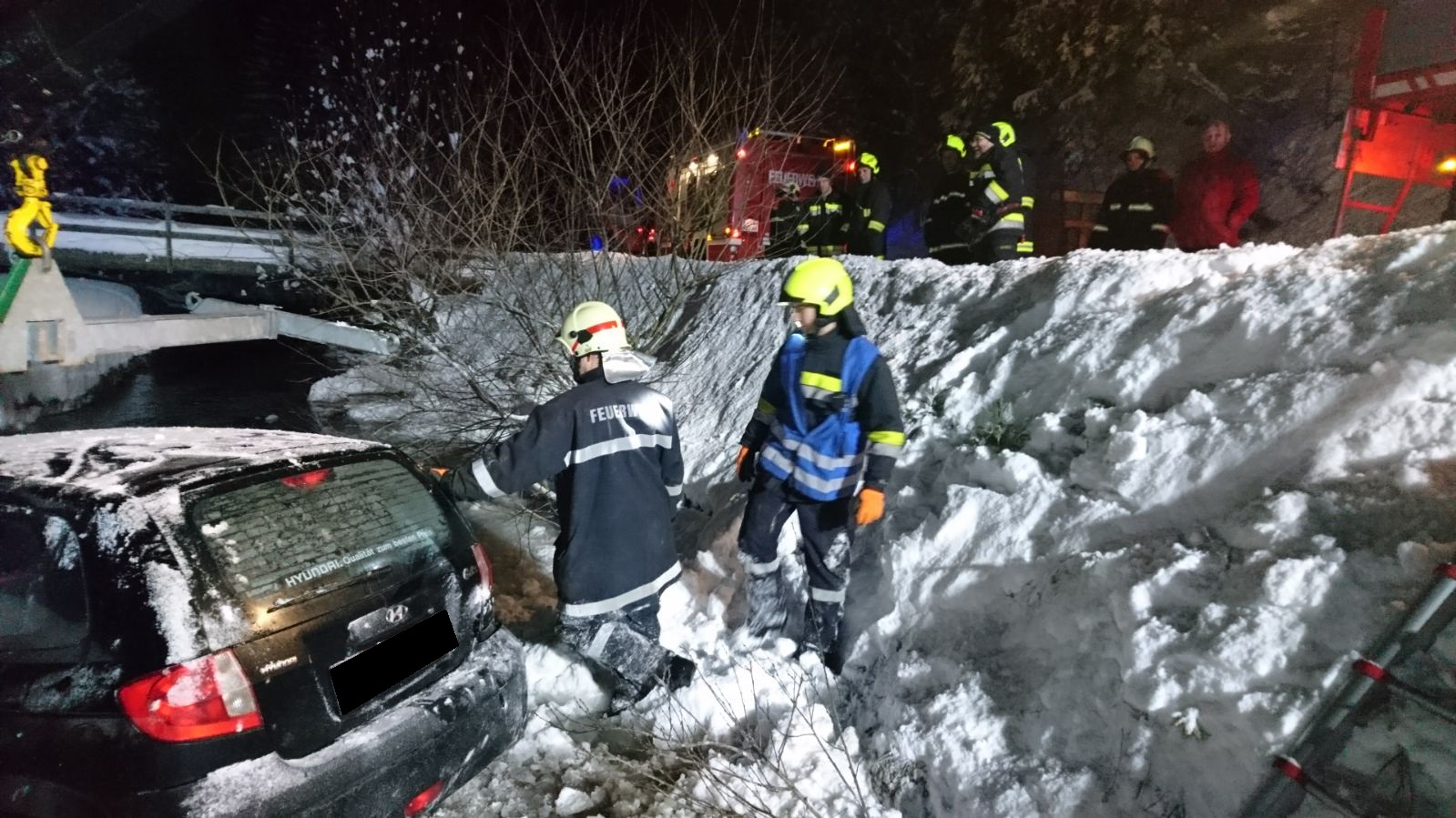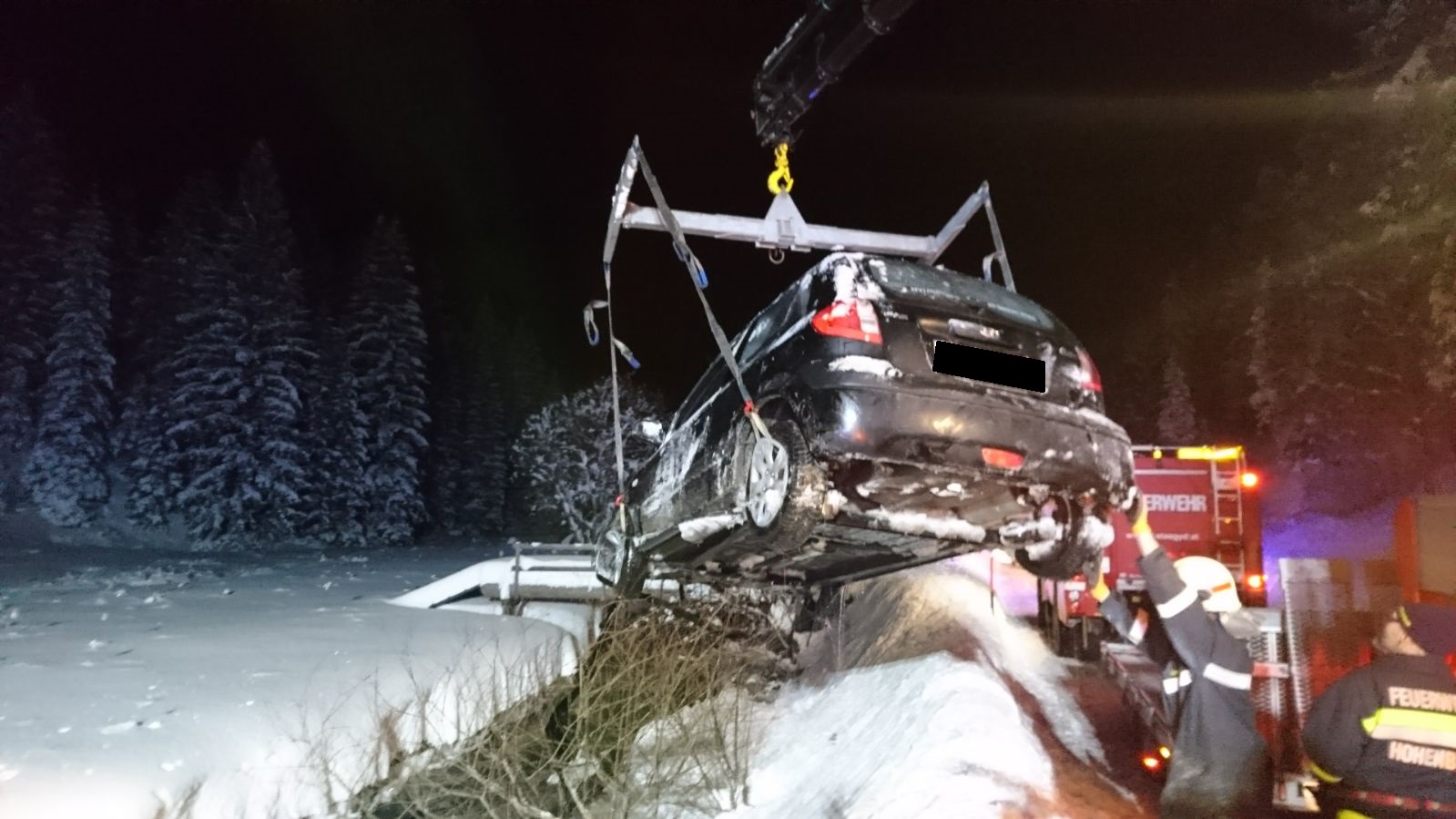 Laut Alarmplan rückten umgehend die FF St. Aegyd-Markt, FF Kernhof und die BTF-RTA aus. Nach der Rückmeldung der ersteintreffenden Feuerwehr Kernhof konnte über Funk rasch Entwarnung gegeben werden. Die Person konnte sich selbstständig aus dem Fahrzeug befreien. Seitens der FF St. Aegyd wurde die Einsatzleitung übernommen und das Kranfahrzeug der FF Hohenberg nachgefordert.