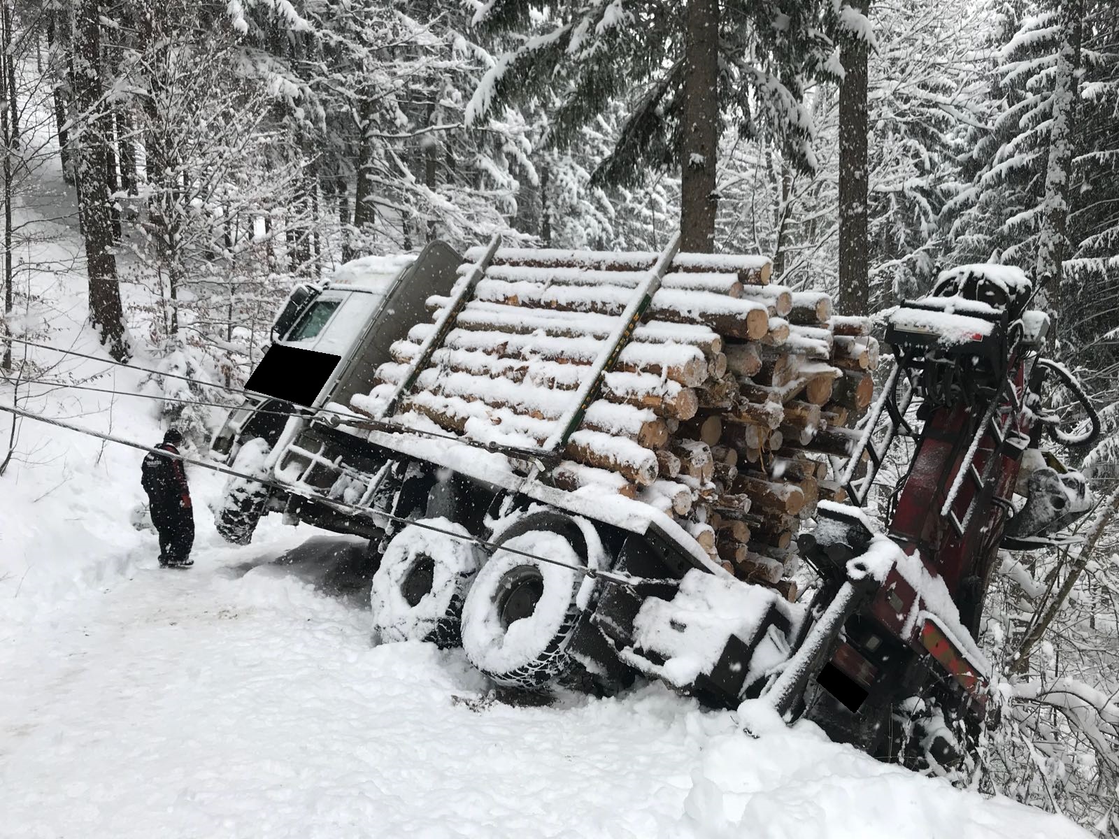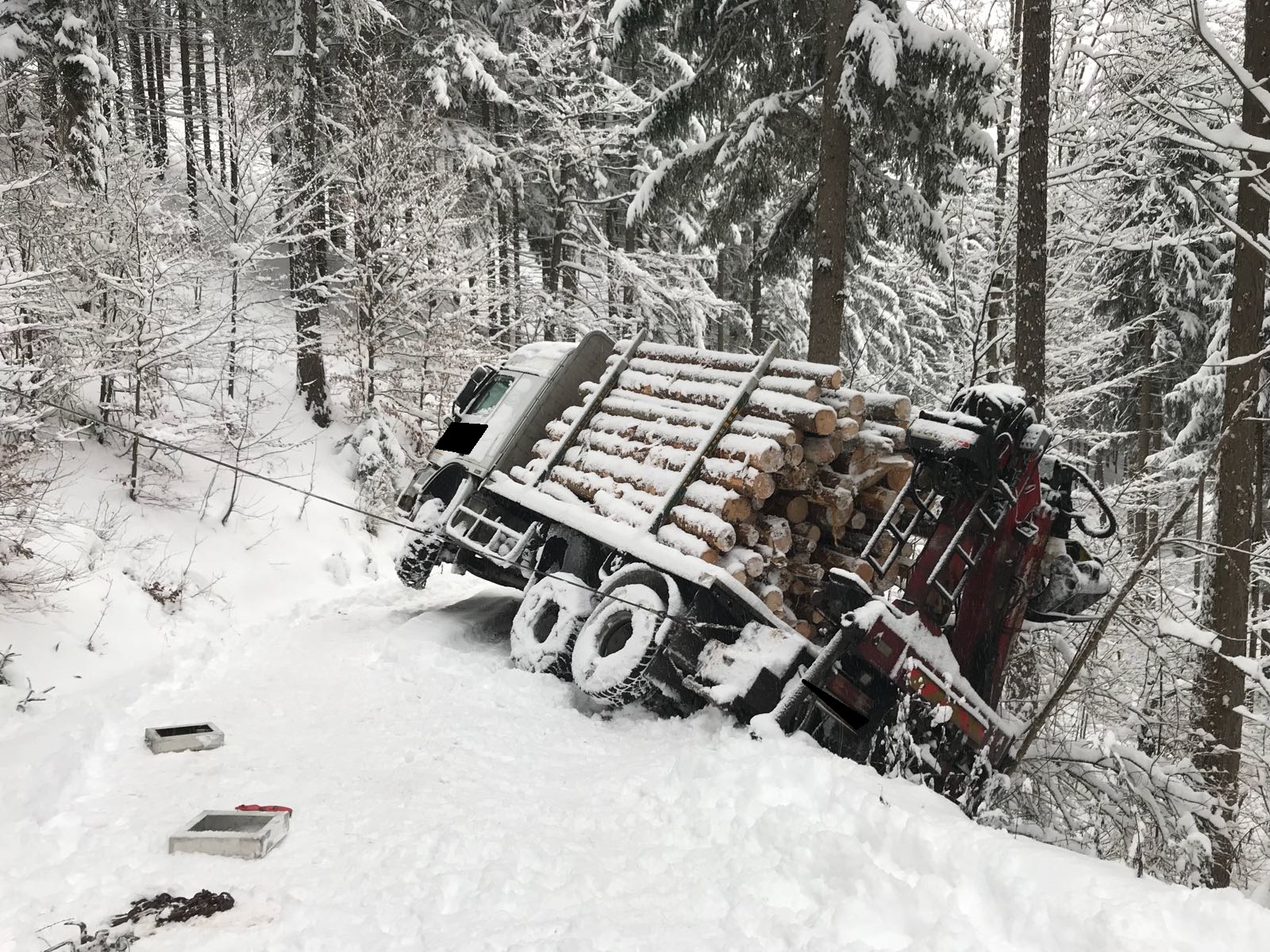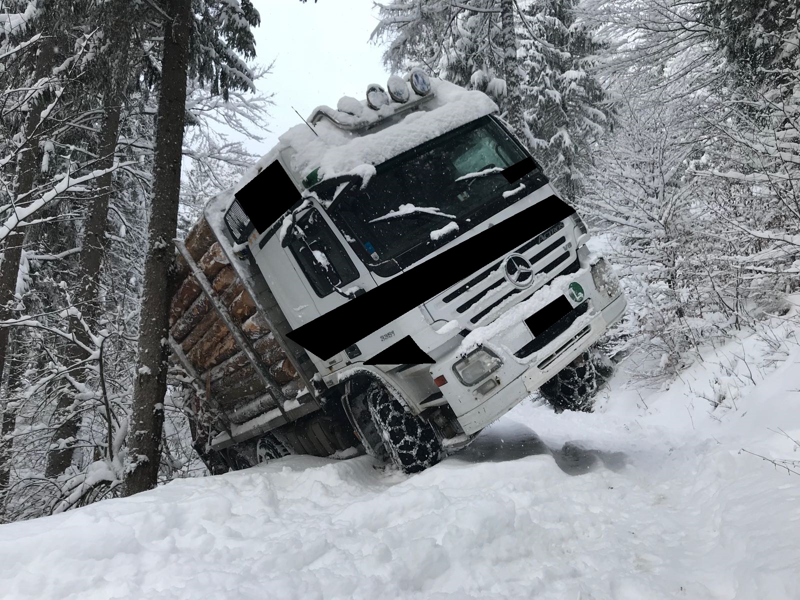 Ein Holztransporter kam auf einer Forststraße, welche auf den Traisenberg führt, ins Rutschen. Der beladene LKW verlor trotz angelegter Schneeketten bei der Talfahrt den Halt auf der Fahrbahn. Der Lenker hatte jedoch großes Glück , da der LKW an einem Baum zum Stillstand kam.