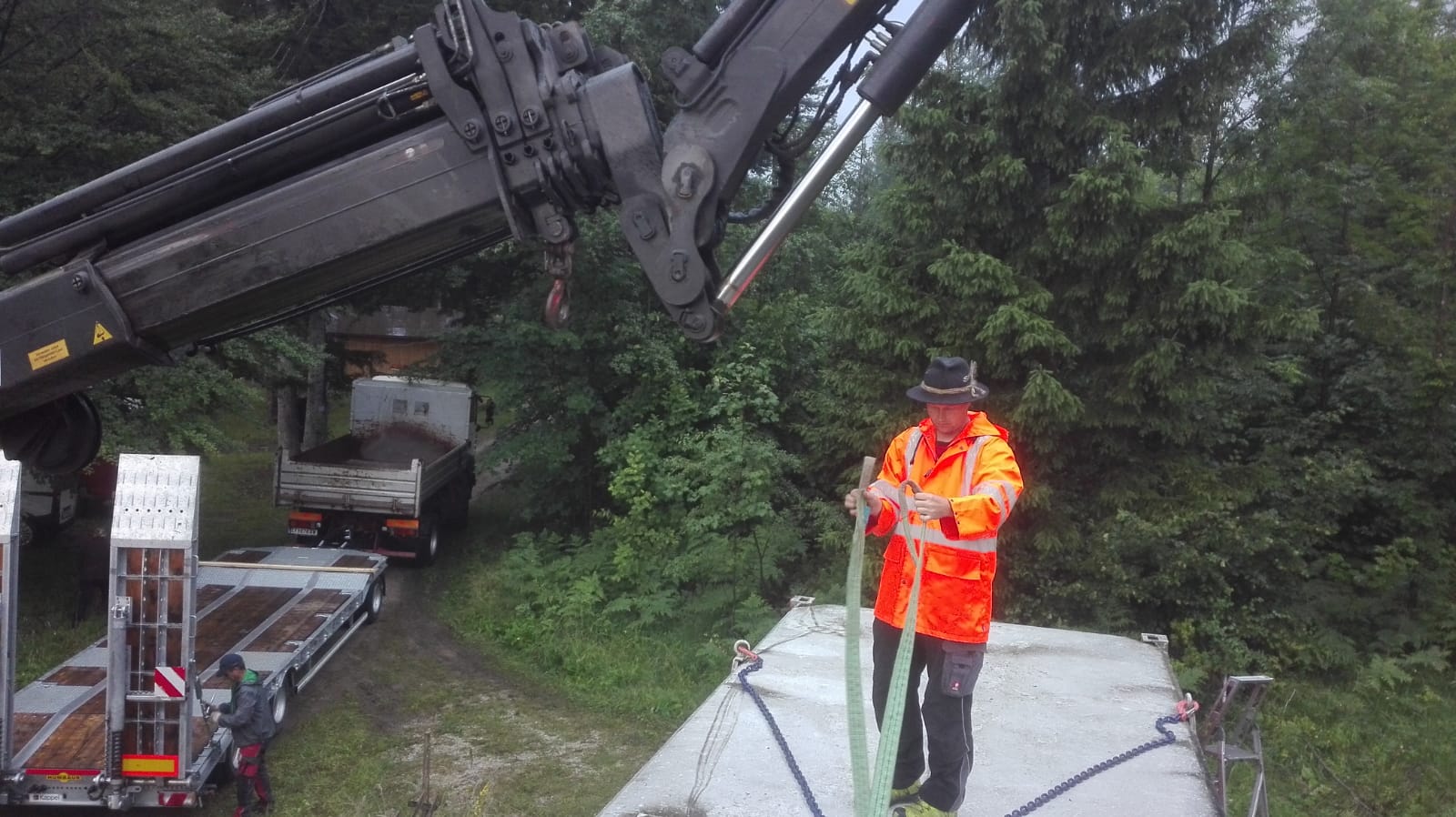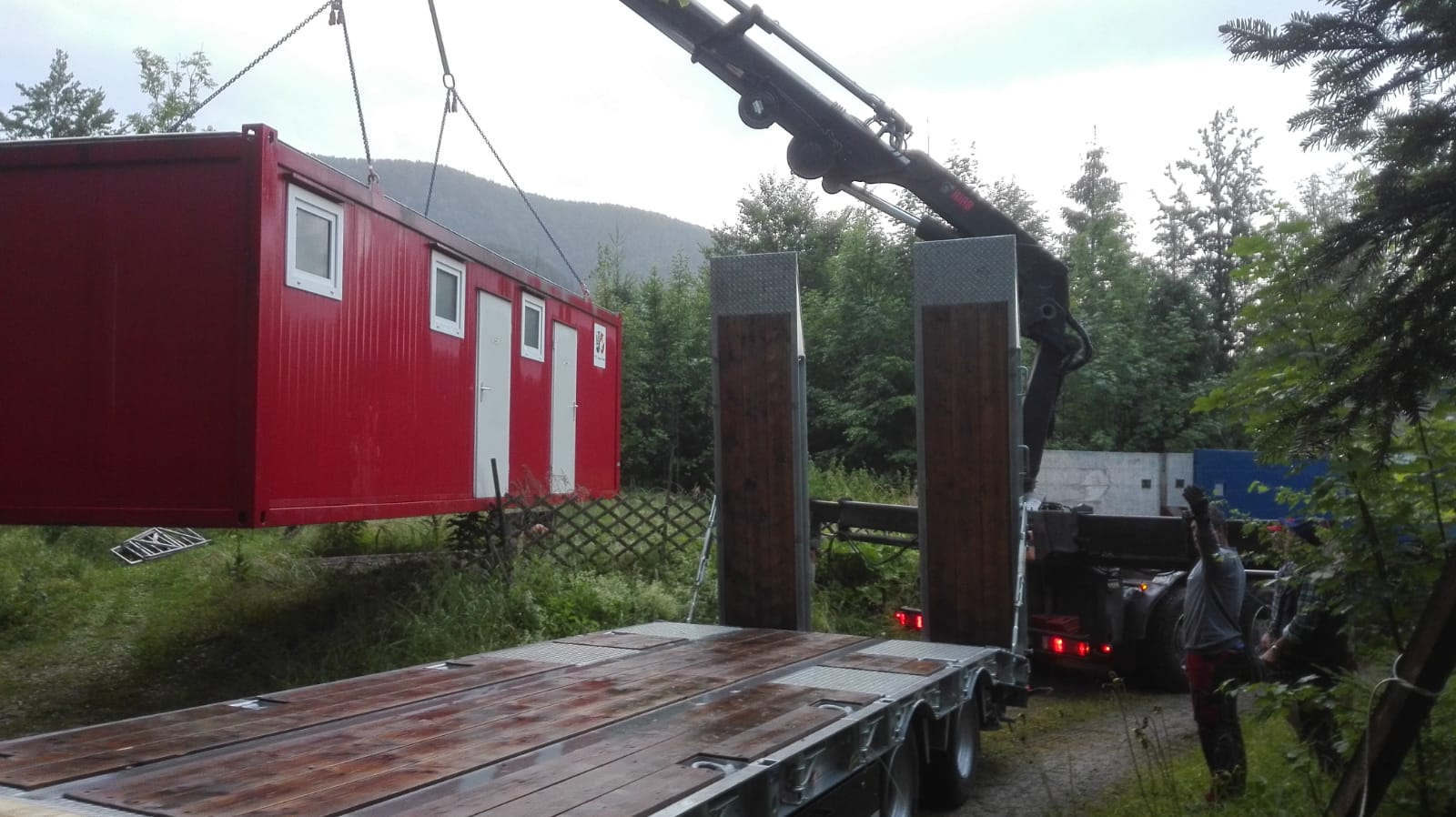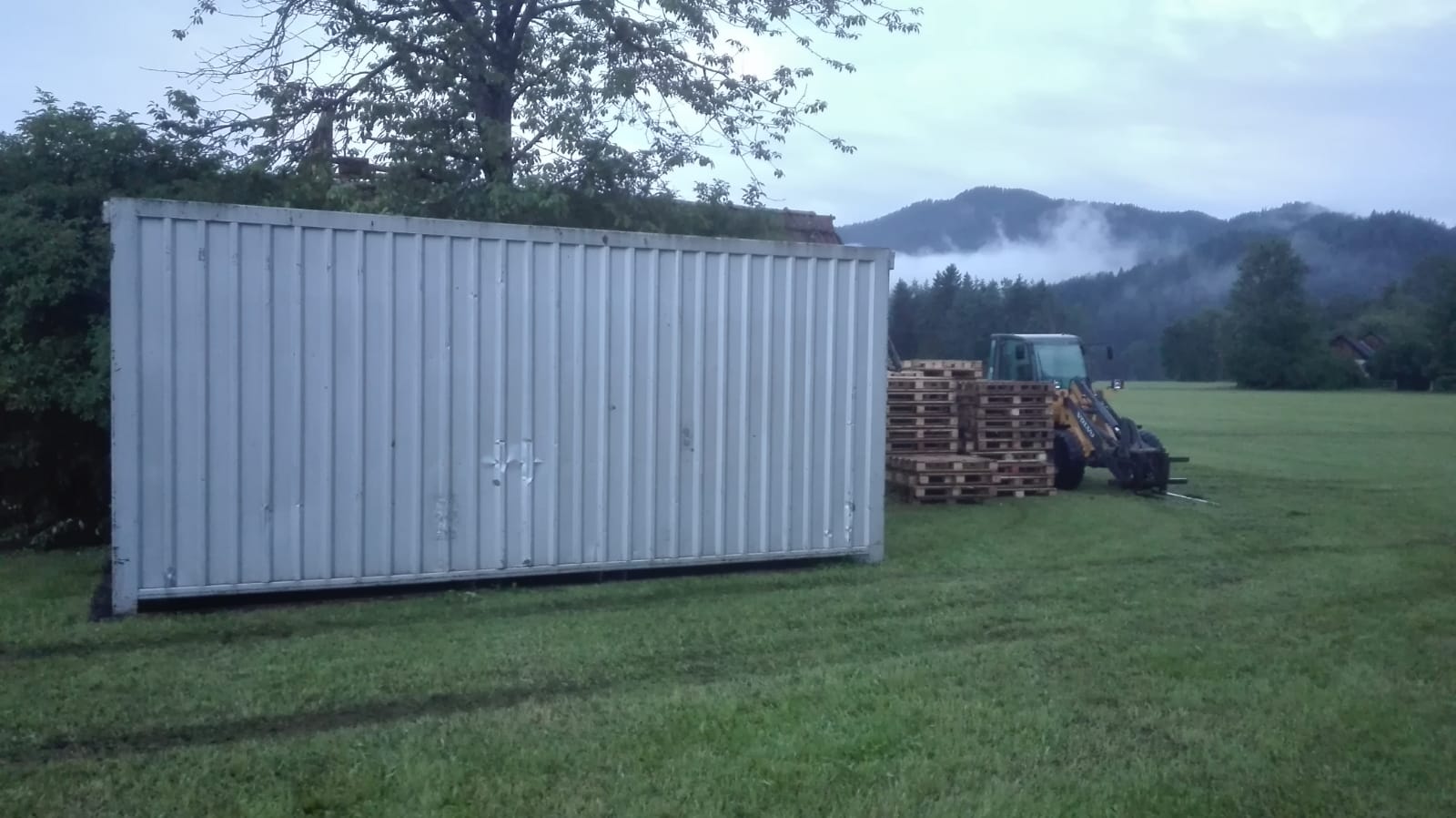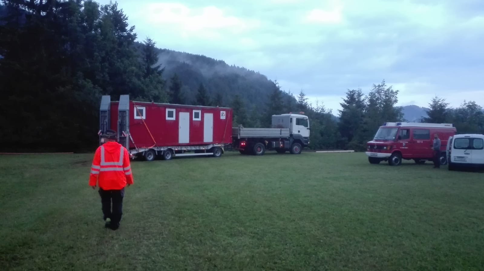 So wurde der WC- Container der FF St. Aegyd am Waldfestplatz verladen und auf den Grillenbühel transportiert und in Stellung gebracht. Auch diverse andere Container konnten bereits angeliefert und aufgestellt werden.