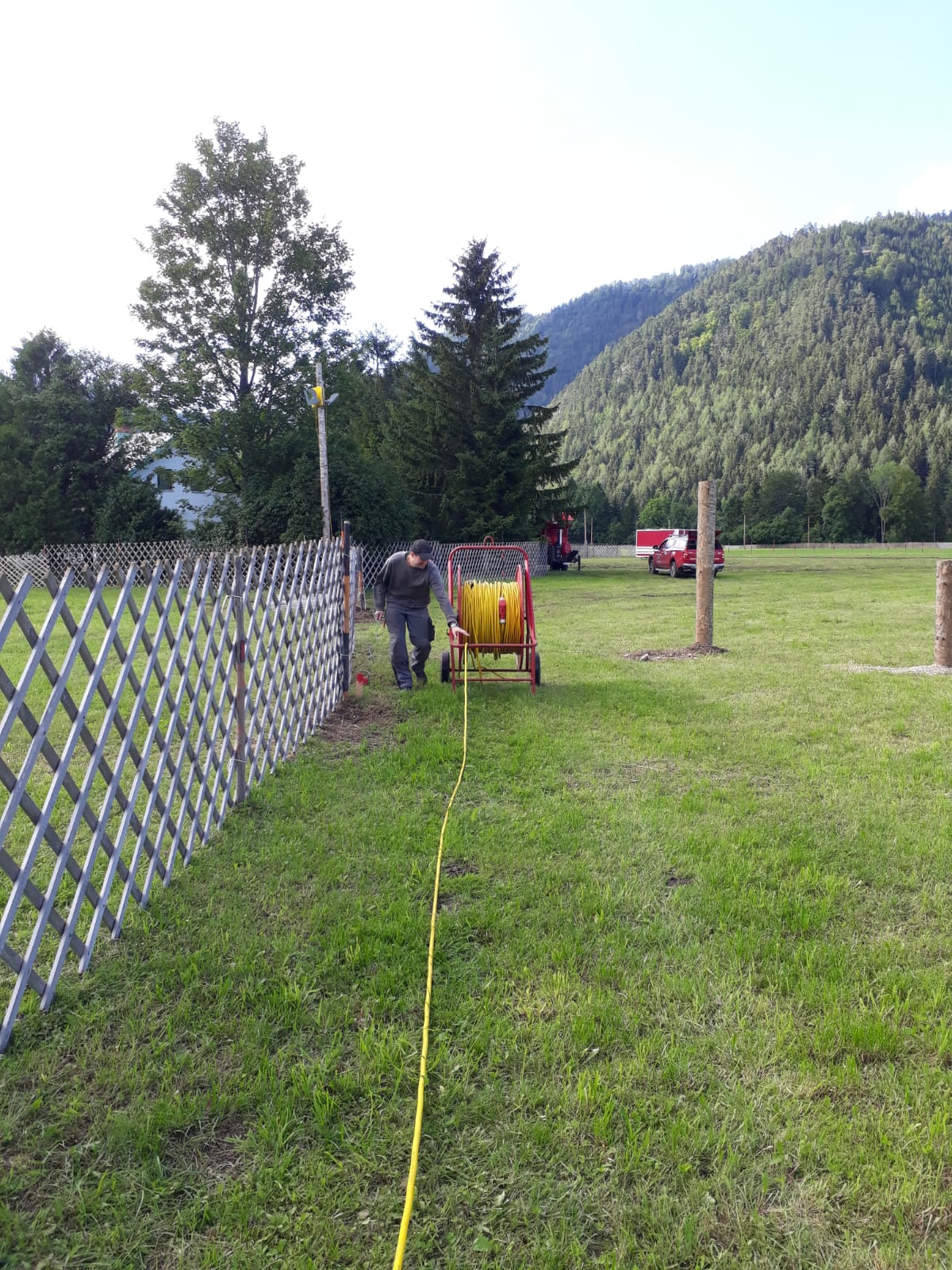 - Die gesamte Einzäunung am Rande des Lagergeländes ist fertig
