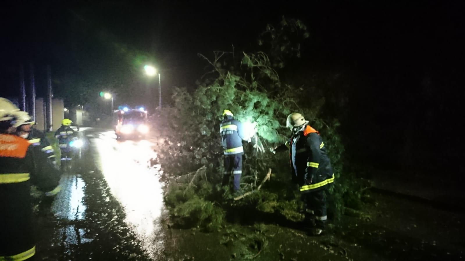 Gegen Mitternacht waren alle Einsätze abgearbeitet und die Einsatzgeräte wieder einsatzbereit. 30.10.2018 – Bereits um 04:52 Uhr folgte die nächste Alarmierung diesmal auf den Osterkogel in St. Aegyd, wieder blockierte ein entwurzelter Baum die Fahrbahn.