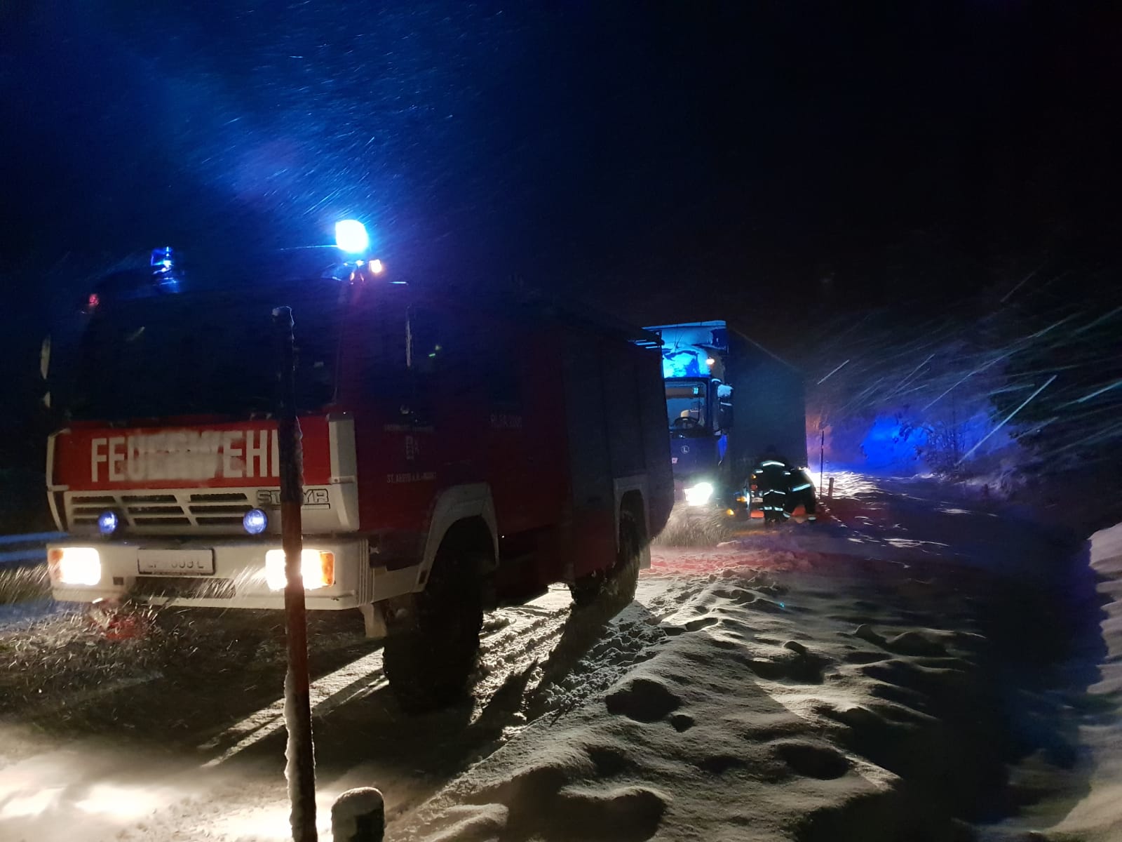 Am 10.12.2018 um 15:50 Uhr wurde die FF St. Aegyd-Markt von Florian St. Pölten zu einer Lkw-Bergung auf die B23 den Lahnsattel alarmiert.