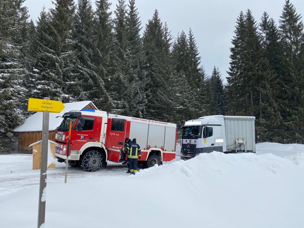 Am Freitag, den 28.02.2020 wurde die FF St. Aegyd um 14:16 Uhr von der BAZ St. Pölten zu einer Lkw-Bergung auf die B23 den Lahnsattel alarmiert.