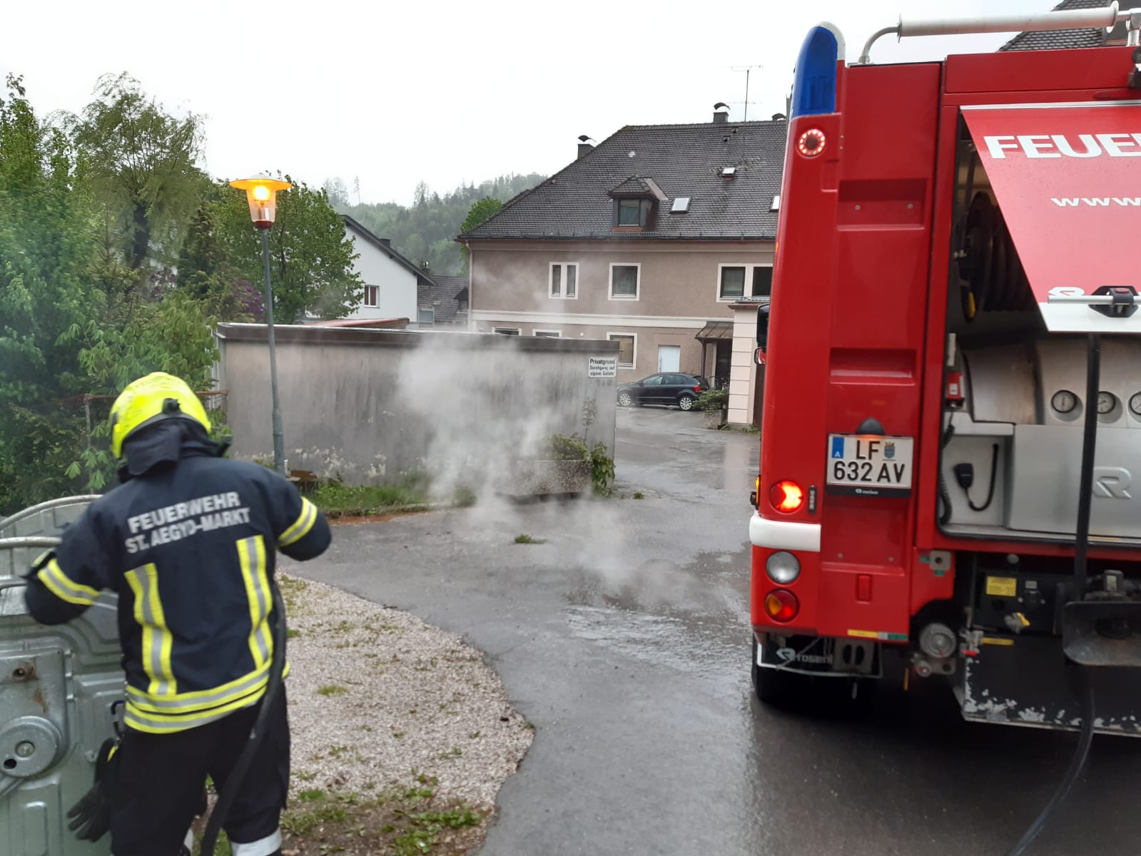 Am Dienstag, den 12.05.2020 um 06:14 Uhr wurde die FF St.Aegyd von Florian St.Pölten zu einem Müllbehälterbrand alarmiert.