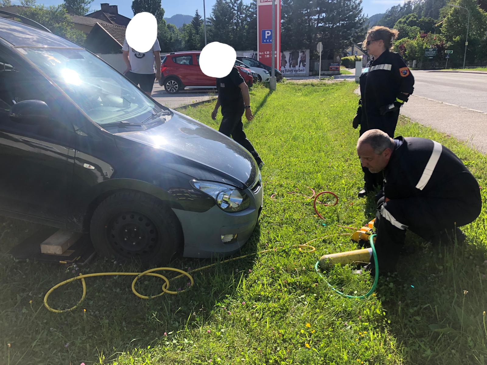 Ein Fahrzeug hatte sich selbstständig gemacht und rollte in eine angelegte Wassermulde. Mittels Hebekissen wurde der Pkw angehoben und mit der Seilwinde zurück auf den befestigten Untergrund gezogen. Der Lenker konnte mit unbeschädigten Fahrzeug seine Fahrt fortsetzen.