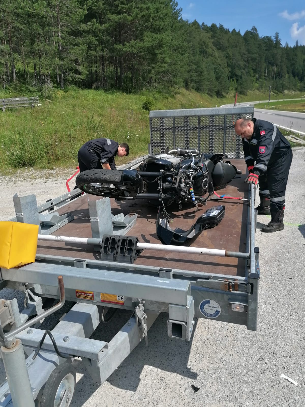 Die FF St. Aegyd führte anschließend die Bergung des beschädigten Zweirads durch.