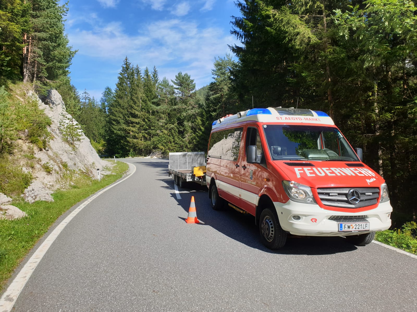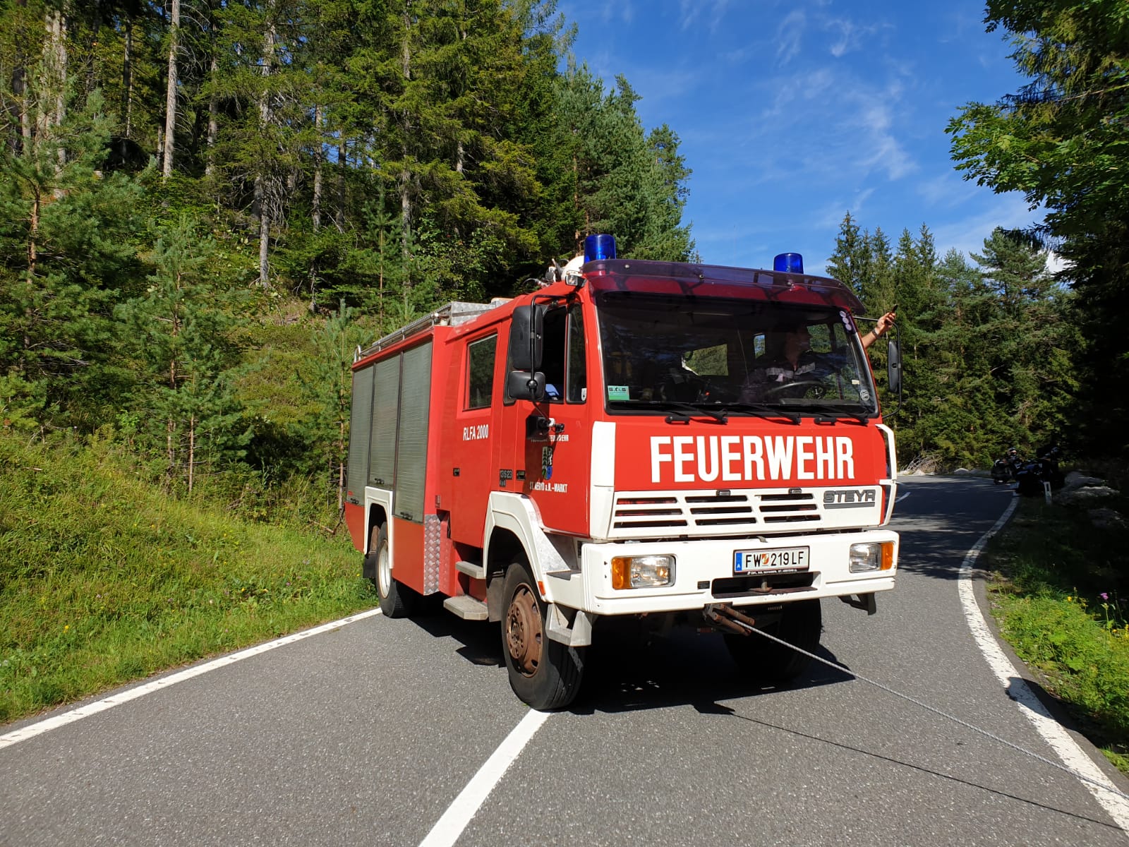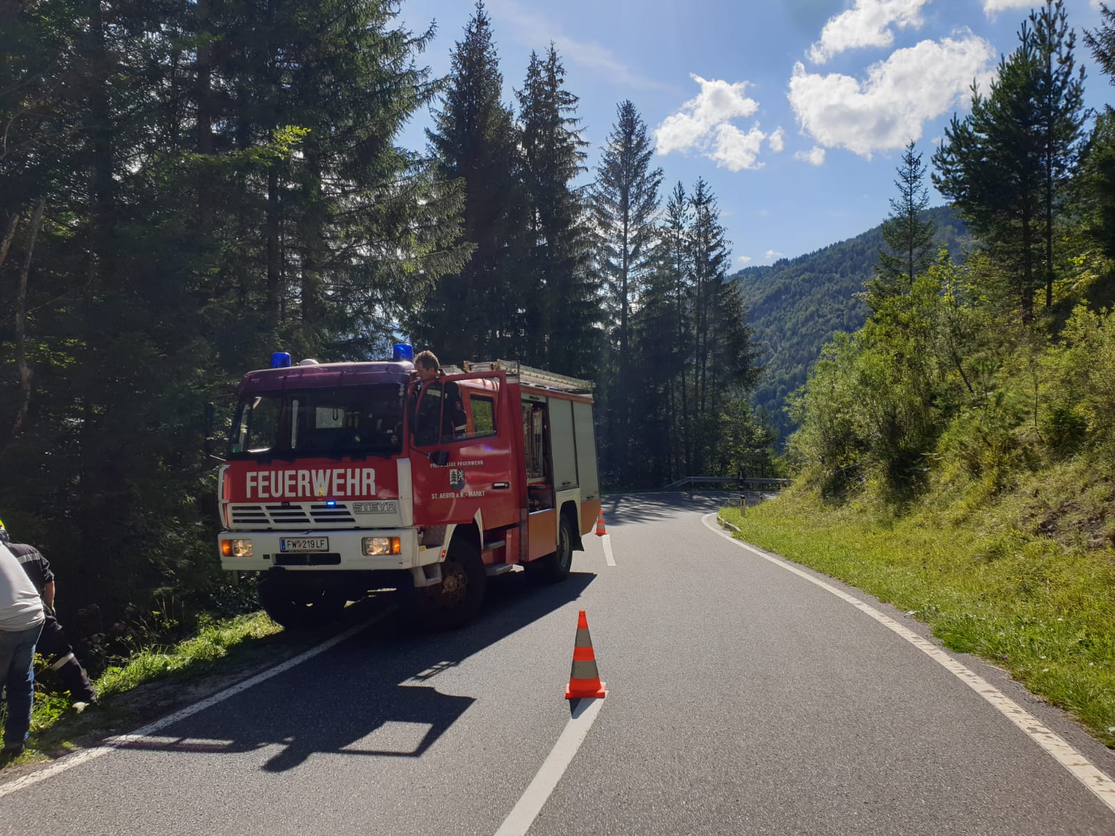 Die FF St. Aegyd führte die Bergung mittels Seilwinde durch, die Straße musste kurzzeitig gesperrt werden.