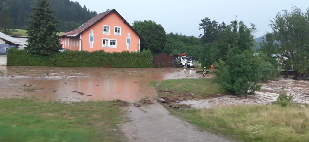 Am Donnerstag, dem 03.07.2025 um 18:04 Uhr wurde die FF St. Aegyd zu einem Unwettereinsatz nach Kernhof alarmiert. Enorme Niederschlagsmengen innerhalb kurzer Zeit führten zu Überflutungen.