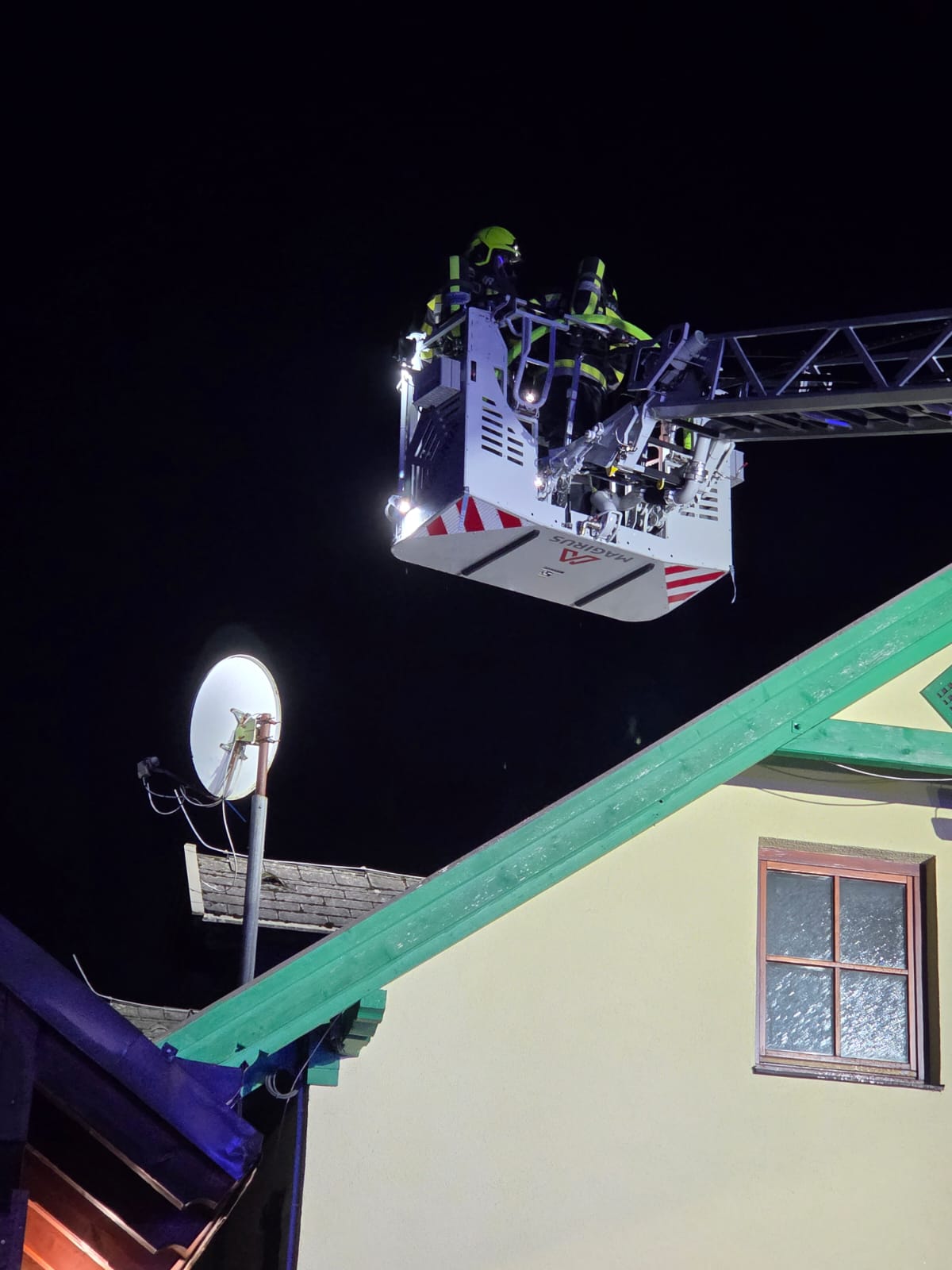 Parallel zur Menschenrettung in dem Gebäude galt es nach weiteren Vermissten zu suchen. Neben Löschangriffen von innen sowie außen mussten Nebengebäude geschützt und unter anderem eine vermisste Person vom Dach gerettet werden.