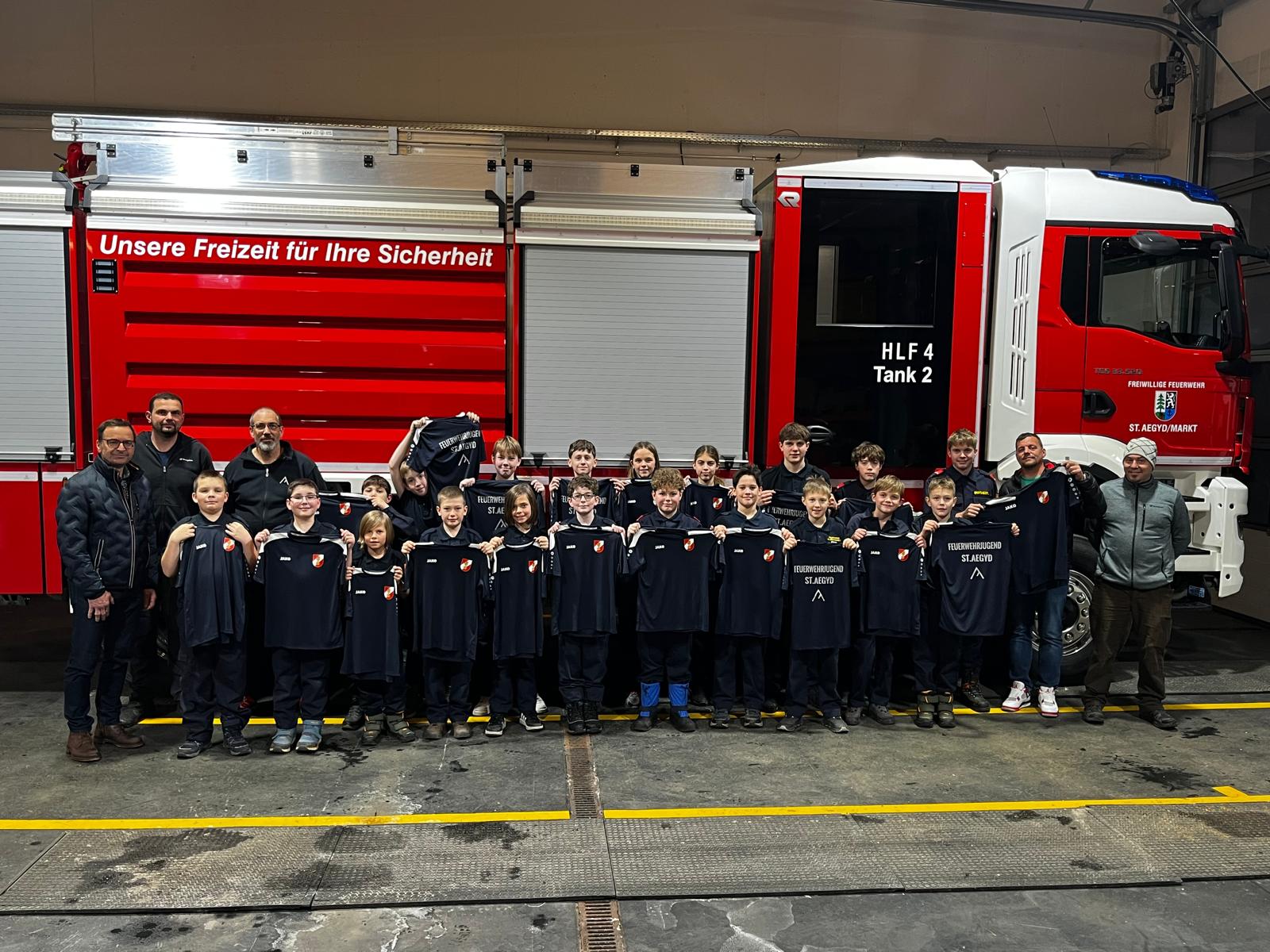 Die Jugendmitglieder durften sich nicht nur über lobende Worte freuen, jeder bekam ein T-Shirt mit Feuerwehraufschrift und dem St. Aegyder Logo.