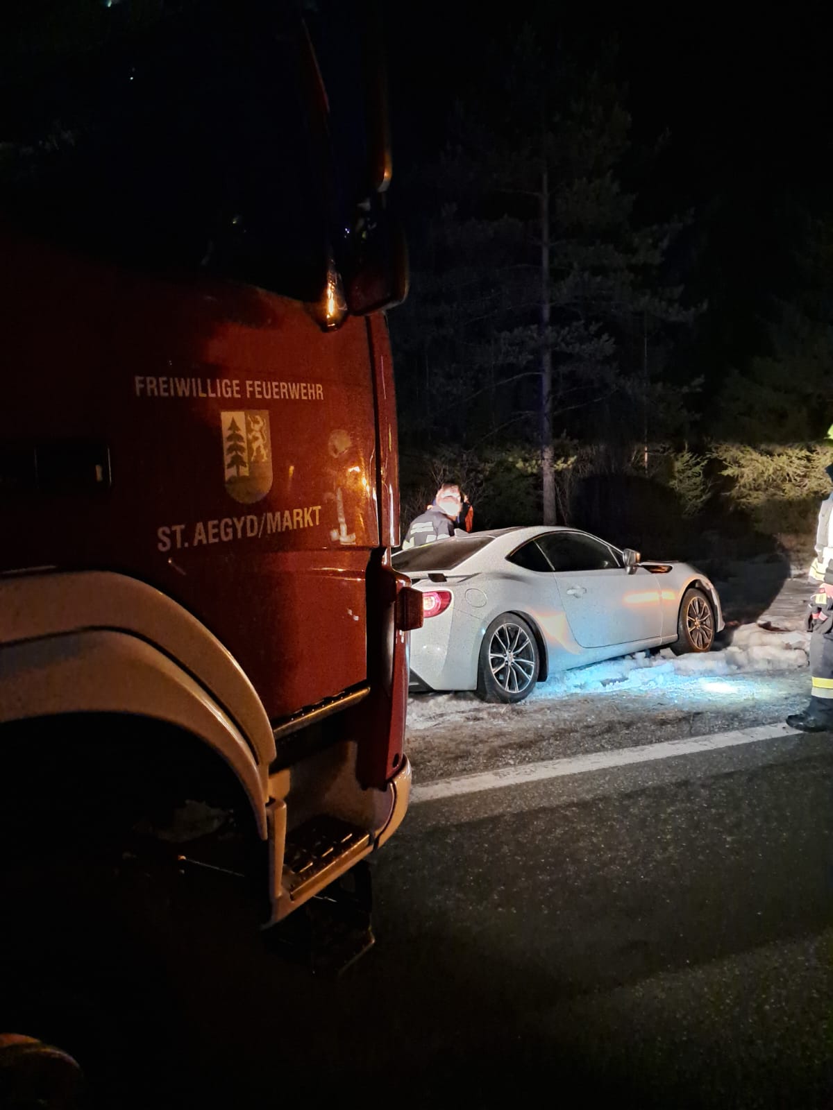 Am Mittwoch, den 04.03.2026 um 02:36 Uhr wurde die FF St. Aegyd zu einer Fahrzeugbergung auf die B21 alarmiert.