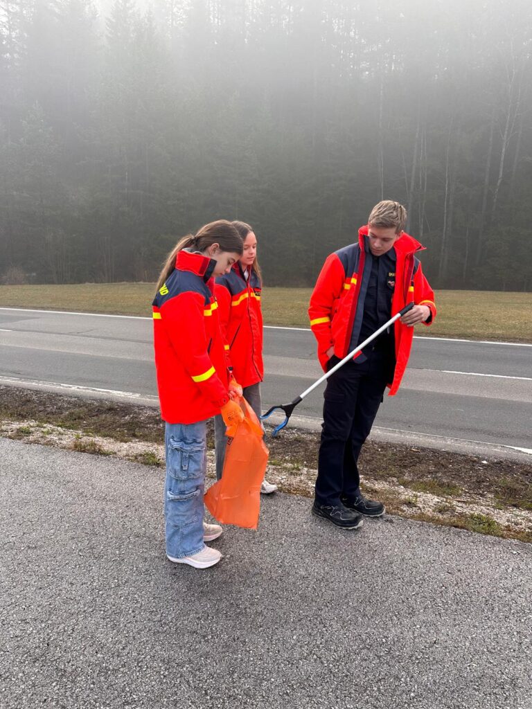 Vor der Fahrt zum Wissenstest beteiligte sich die St. Aegyder Feuerwehrjugend noch für zwei Stunden an der Ortsreinigung in unserer Heimatgemeinde.