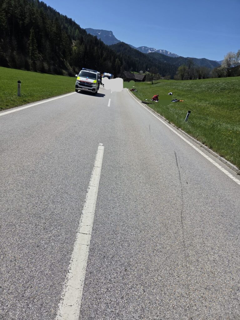 Ein Motorradfahrer dürfte ein vor ihm fahrendes Trike-Motorrad übersehen haben und fuhr auf dieses auf. Der Mann wurde in die Wiese geschleudert und blieb verletzt liegen.
