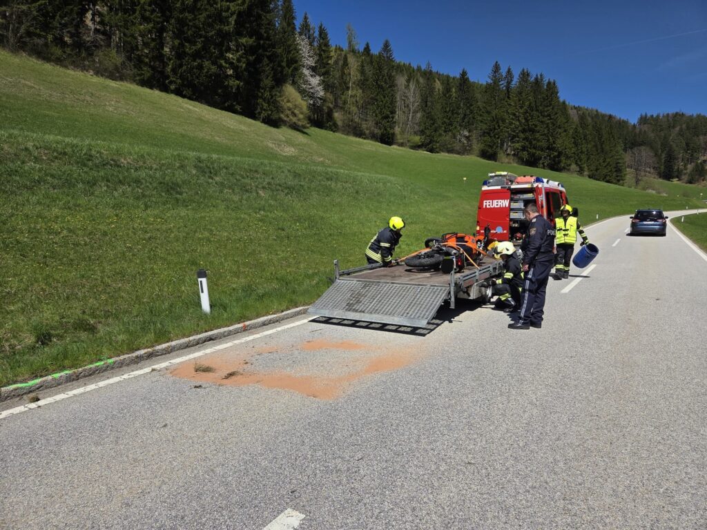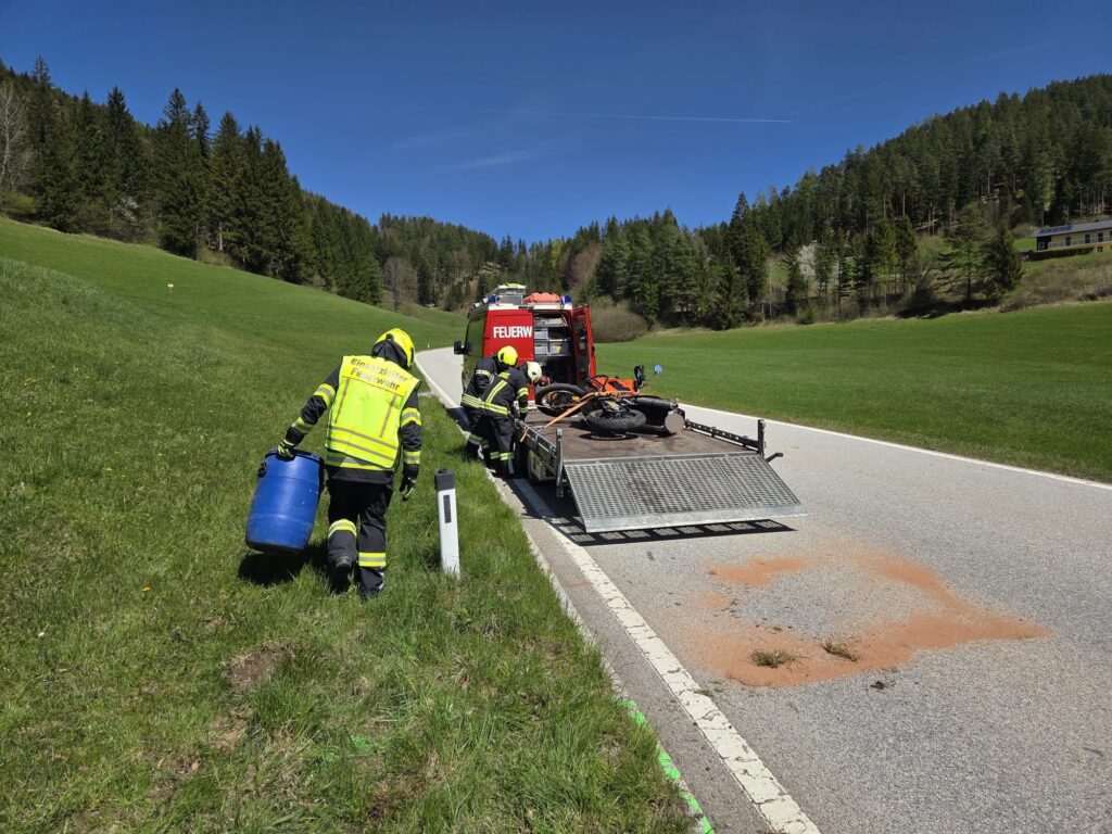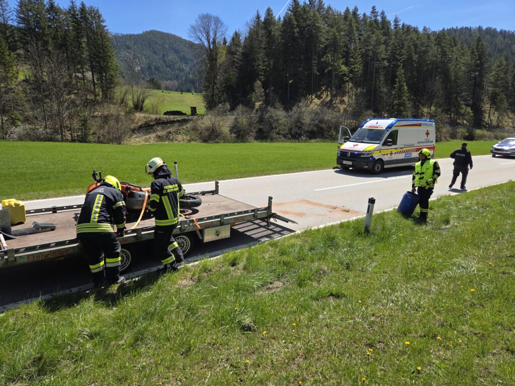 Am Freitag, den 24.04.2026, um 12:11 Uhr wurde die FF St. Aegyd zu einer Motorradbergung Richtung Ochsattel alarmiert.